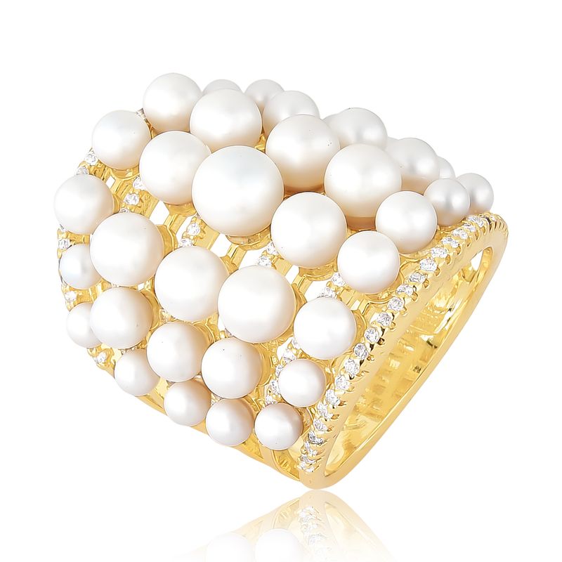 AnéisColeção anéisAnel semijoia trabalhado com pérolas e zircônias
