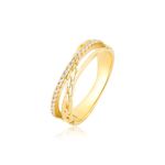Anel semijoia fio liso e cravejado com detalhe corrente