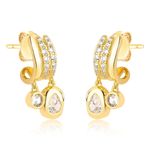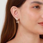 Brinco semijoia fios cravejados com detalhe ponto de luz e gota