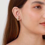 Brinco semijoia oval vazado com detalhe flores cravejadas