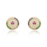 Brinco semijoia redondo cravejado