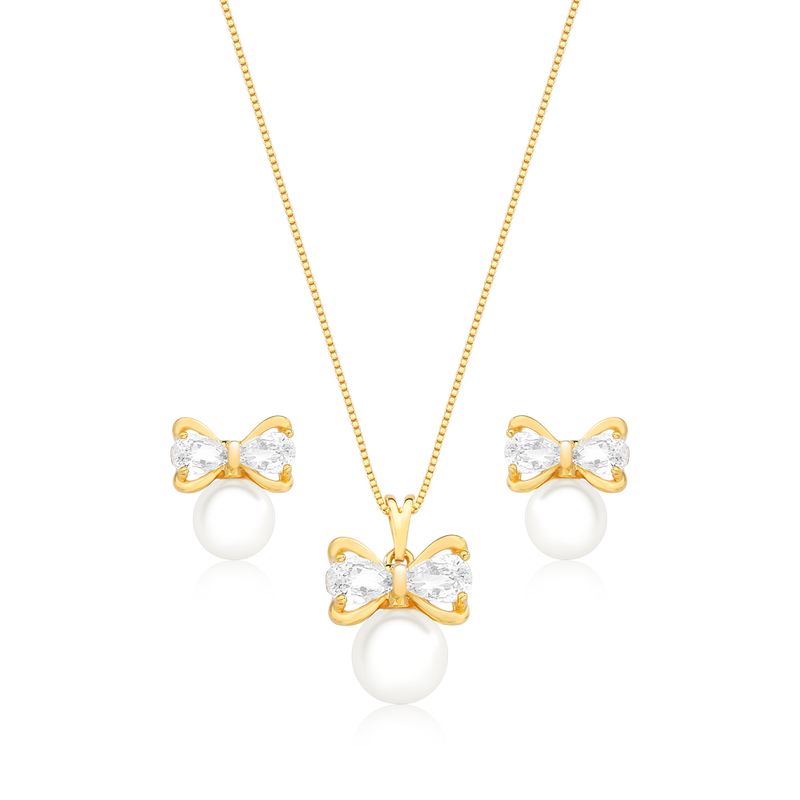ConjuntosColeção conjuntosConjunto semijoia laço com detalhe pérola