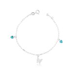 Pulseira prata 925 borboleta lisa e corações em zircônia