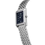 relógio mondaine feminino prata, possui mecanismo analógico, a pulseira é na cor prata. a caixa é no aço na cor prata, o visor preto, medindo 2,7 cm de diâmetro e 0,8 cm de espessura. o relógio mondaine feminino tem nível de resistência à água especificado em 3 atm.