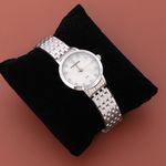 relógio mondaine feminino prata, possui mecanismo analógico, a pulseira aço é na cor prata. a caixa no aço na cor prata, o visor madrepérola com detalhe em zircônia, medindo 3,5 cm de diâmetro e 0,9 cm de espessura. o relógio mondaine feminino tem nível de resistência à água especificado em 5 atm.